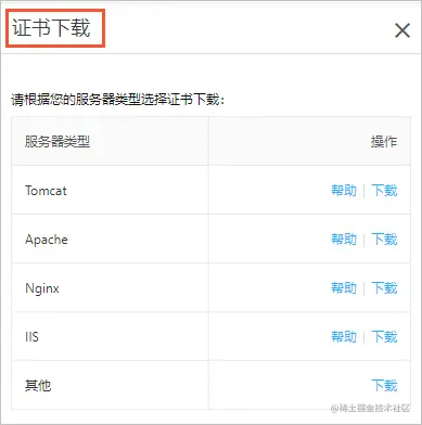 【说明】 如果证书是在阿里云的产品上使用,建议下载Nginx服务器版本的证书。