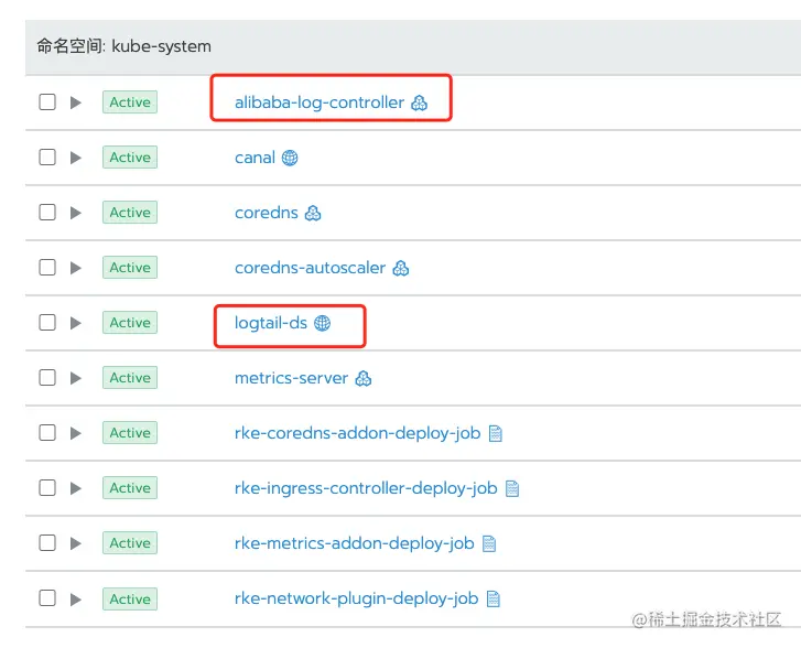 使用阿里云收集日志呢,你需要开通阿里云的日志服务,然后安装 Logtail 日志组件 alibaba-log-controller Helm,这个在官方文档里有安装脚本,我把文档链接贴在下面,在安装组件的过程中会自动创建aliyunlogconfigs CRD,部署alibaba-log-controller的Deployment,最后以 DaemonSet 模式安装 Logtail。然后你就可以在控制台,接入你想要收集的日志了。安装完以后是这样的: