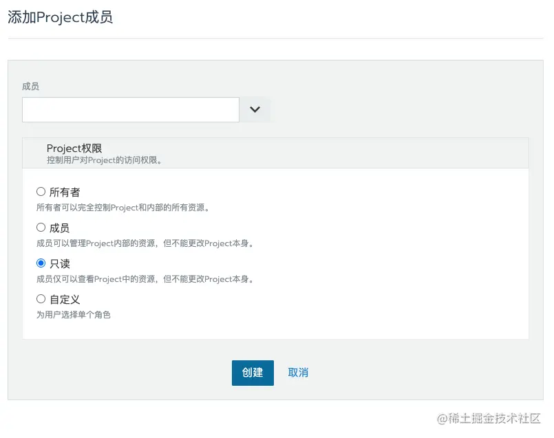 比如下图,我可以给集群添加用户、也可以给某个 Project 添加用户,并且可以指定几个不同的角色,甚至可以自定义角色。