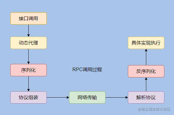 服务提供方根据约定的协议解析出请求数据,然后反序列化得到参数,找到具体调用的接口,然后执行具体实现,再返回结果。