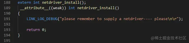 注意不要注释掉__attribute__((weak)) int netdriver_install()函数,因为该函数不是每个板子都需要适配驱动,如果需要自己实现才进行注释,否则编译报错。