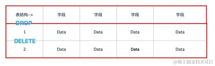 之前在讲解DDL时介绍了DROP(传送门地址:数据定义语言 - DDL),在最开始的时候容易混淆,其实很容易理解。DROP删除的是表结构,既然结构都没有了,那数据也就一同被清除了。DELETE只是删除数据,而表结构依然存在。