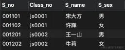 SELECT S_no AS `学号`,S_name AS `姓名`,S_sex AS `性别`