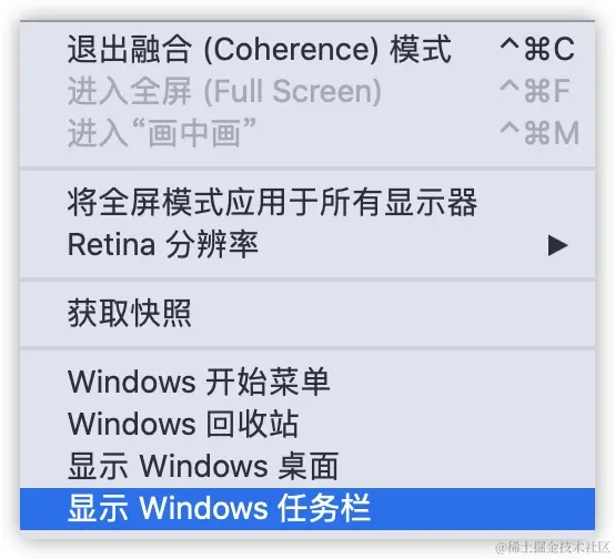 注意:左下角显示Parallels标识(两个红色竖杠)的app为Windows虚拟机中的应用,可能来自于不同的虚拟机,如果对应的虚拟机未开机,点击后会直接开机。