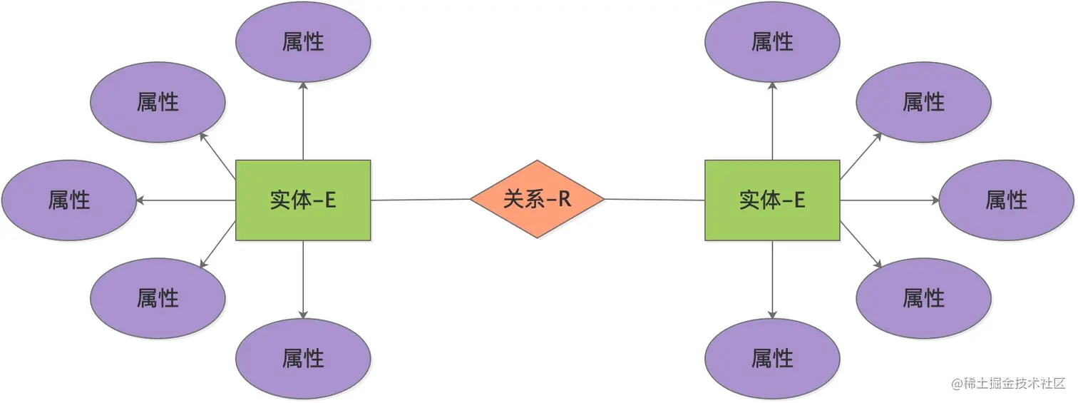 概念模型主要是基于客观世界实际存在的事物或场景进行的描述,不涉及到具体的DBMS和实现步骤。表示概念模型最常用的形式是使用E-R(实体-关系)图,包含以下三个要素: