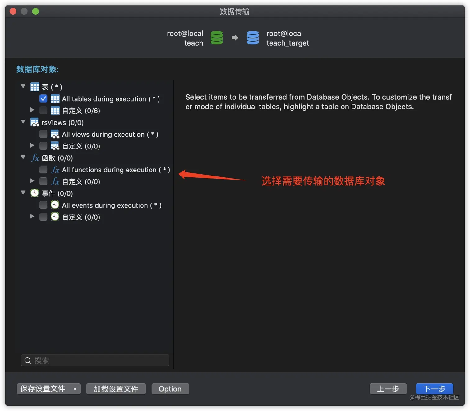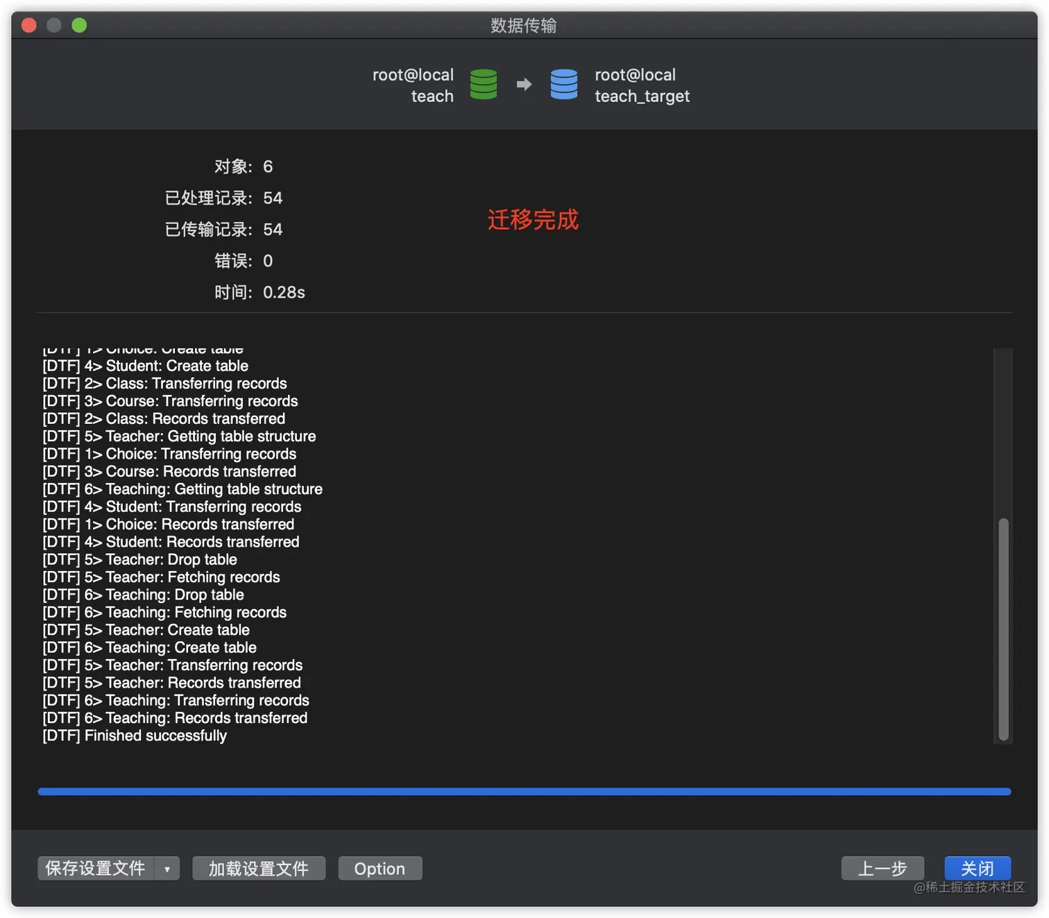 使用数据传输功能的效果与通过SQL语句进行数据导入类似,一般都会先删除已存在的相同的表,这一点一定要注意,使得最终结果与数据源相同,完成完整的数据迁移。