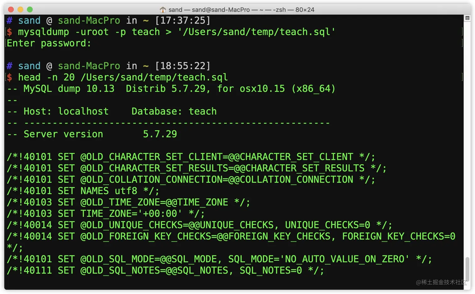 mysqldump -u 用户名 -p 数据库名 > '文件路径'