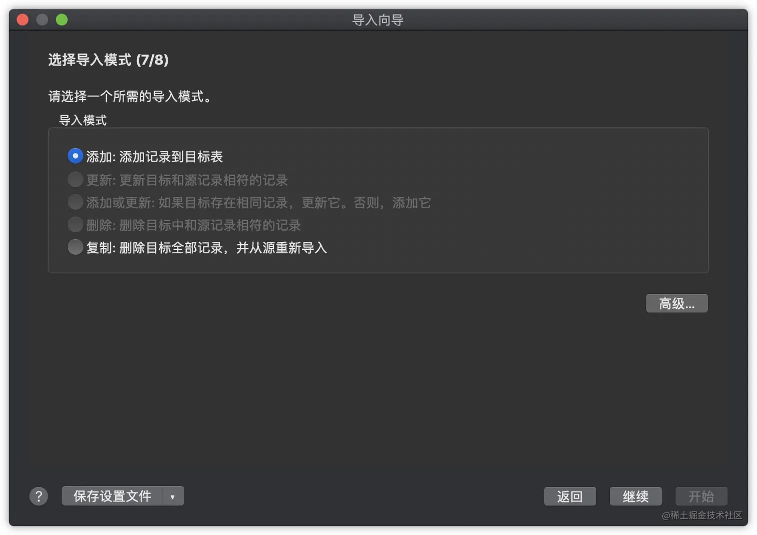 根据需要选择导入模式,最后点击开始即可。