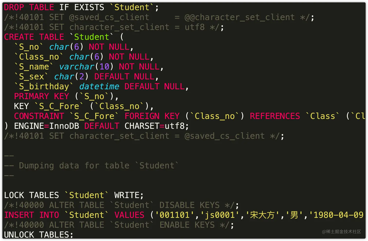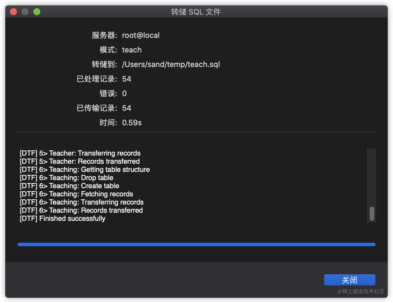 会生成建表语句及数据插入语句。