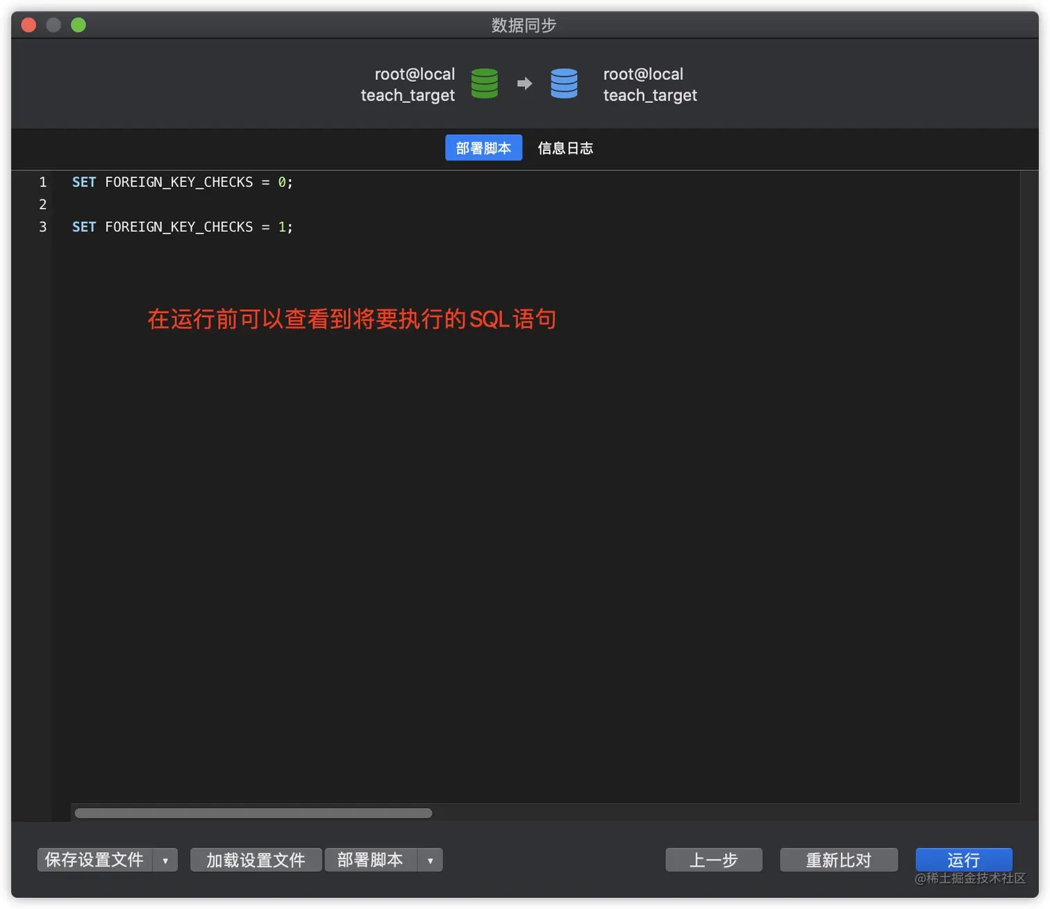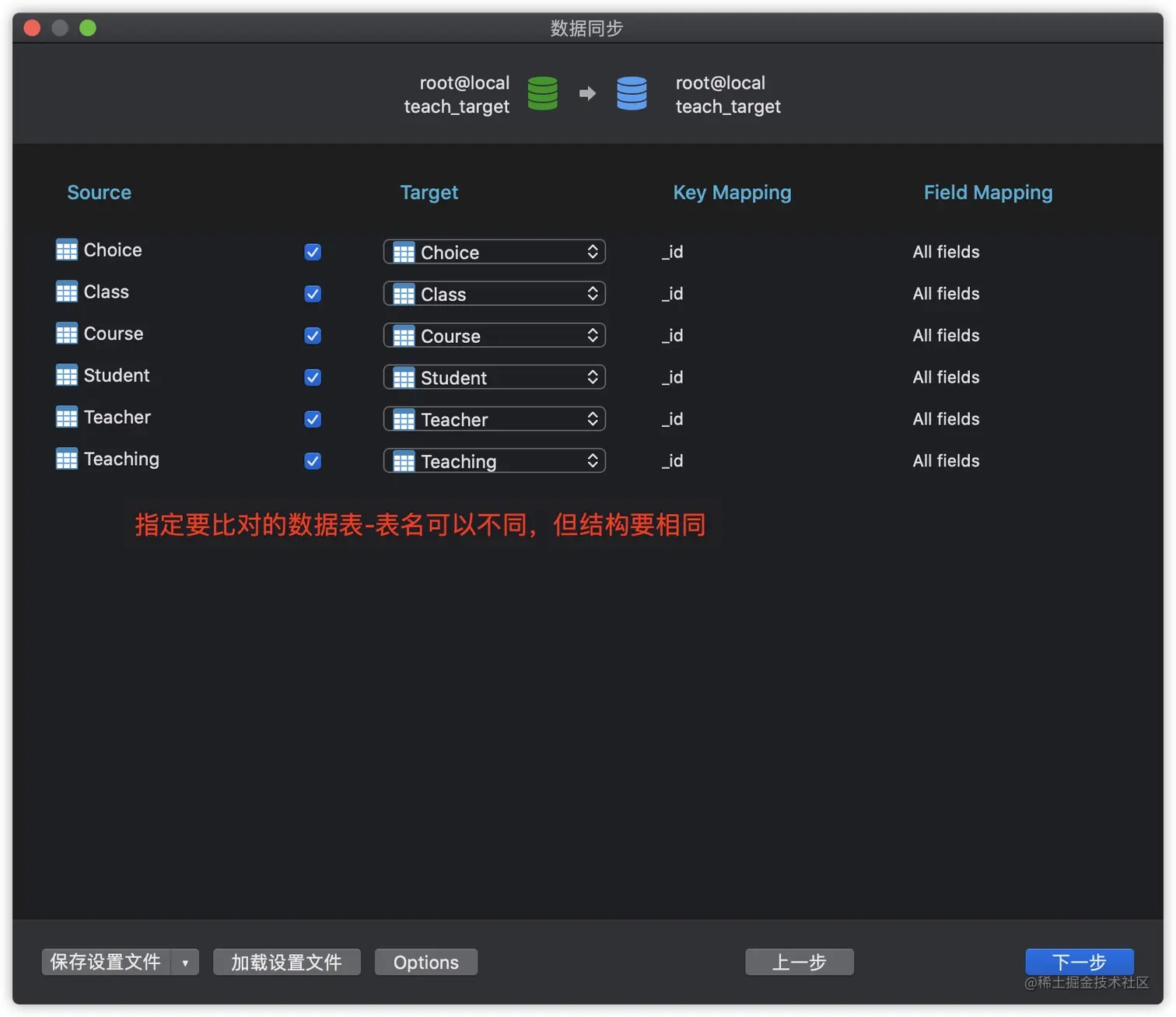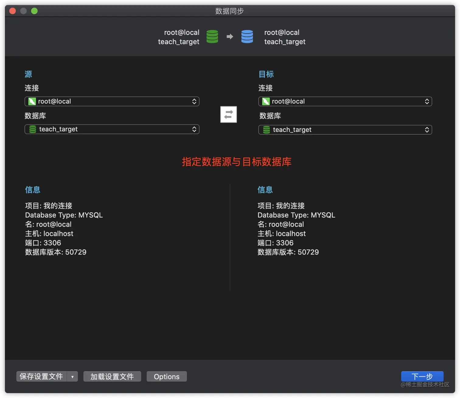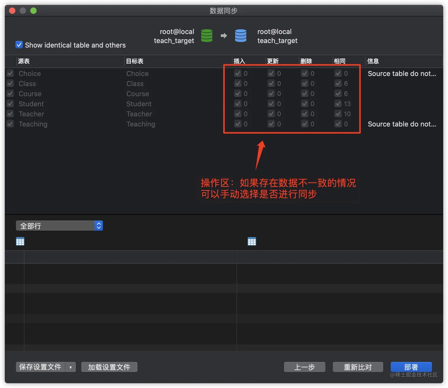 数据同步的操作步骤与数据传输类似,同样需要先指定数据源与目标数据库,区别在于数据同步会先比较两个数据库的差异,用户可以自行决定是否进行同步,主要适用于有相同表结构的数据库以及主从分布等场景。