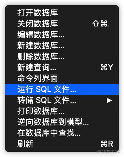 除此之外,如果我们想要进行整个数据库的数据导入,也可以直接右键数据库:运行SQL。