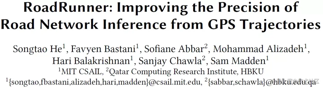 本文将介绍美国麻省理工学院(MIT)与卡塔尔哈马德-本-哈利法大学(HBKU)联合在国际地理信息领域顶会ACM SIGSPATIAL 2018上发表的论文《RoadRunner: Improving the Precision of Road Network Inference from GPS Trajectories》,使得在提高路网推测精确度的同时,不损失覆盖率(或召回率,recall)。本文将路网推测的问题分为两阶段,_先用本文提出的RoadRunner算法在高轨迹密度区域推测出高精确度地图,然后与传统的轨迹推测路网方法结合,_满足召回率的要求。RoadRunner的核心思想是利用每条轨迹的连通性来判断相交的轨迹是行驶在同一条道路上,还是平行的两条路上。