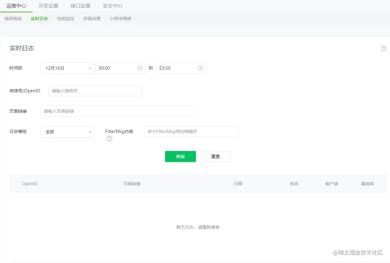 微信小程序在管理后台,也有提供查看日志的功能,但此类的日志,只能查看该用户由于脚本、api 调用出错的