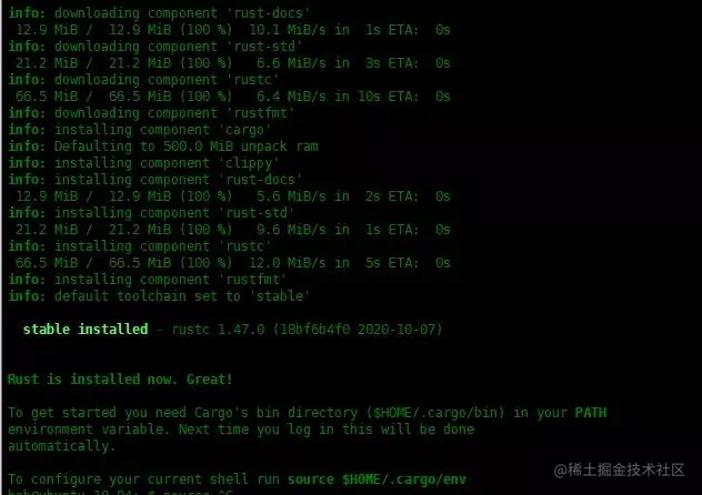 bob@ubuntu-18-04:~$ export RUSTUP_DIST_SERVER=https://mirrors.ustc.edu.cn/rust-staticbob@ubuntu-18-04:~$ export RUSTUP_UPDATE_ROOT=https://mirrors.ustc.edu.cn/rust-static/rustupbob@ubuntu-18-04:~$ curl https://sh.rustup.rs -sSf | sh