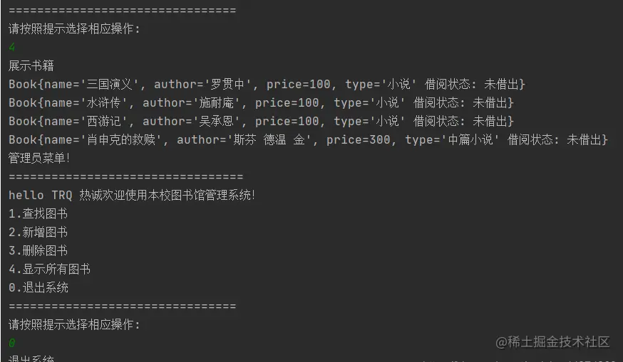 System.out.println("4.显示所有图书");