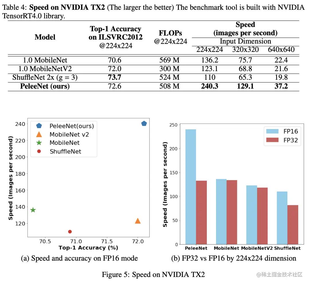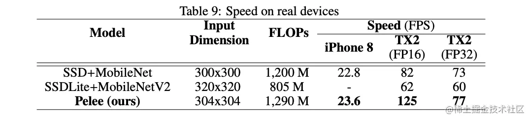 PeleeNet在各种设备上的实际推理速度对比。