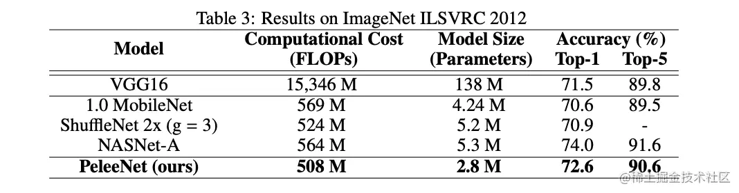 PeleeNet是DenseNet的一个变体,没有使用流行的深度可分离卷积,PeleeNet和Pelee仅通过结构上的优化取得了很不错的性能和速度,读完论文可以学到很多网络设计的小窍门。