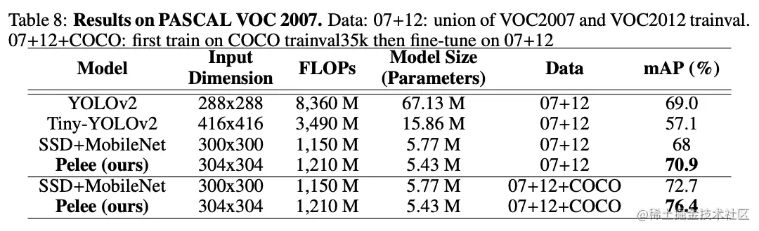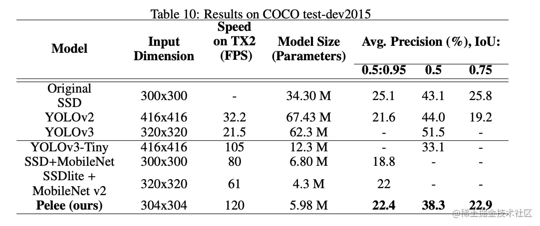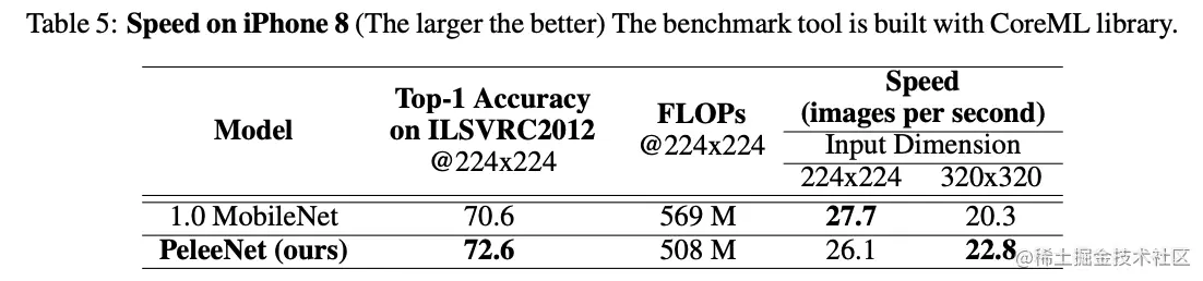 基于DenseNet的稠密连接思想,论文通过一系列的结构优化,提出了用于移动设备上的网络结构PeleeNet,并且融合SSD提出目标检测网络Pelee。从实验来看,PeleeNet和Pelee在速度和精度上都是不错的选择。