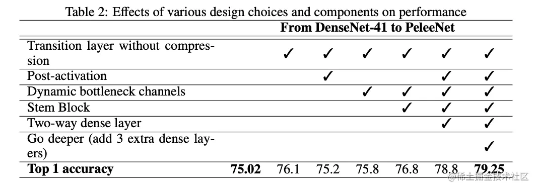 对PeleeNet的key feature进行验证。