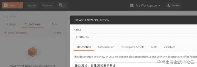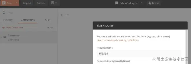 新建一个集合TestDemo,用来管理相关用例:
