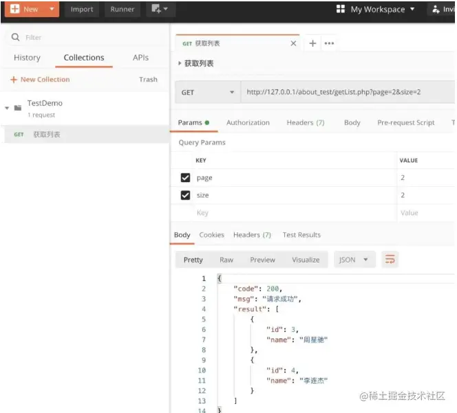 下面我们使用Postman工具操作getList接口。