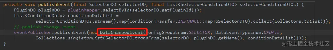 这里使用 eventPublisher (也就是ApplicationEventPublisher,spring 自带的一种事件发布机制) 发布一个 DataChangedEvent 事件。