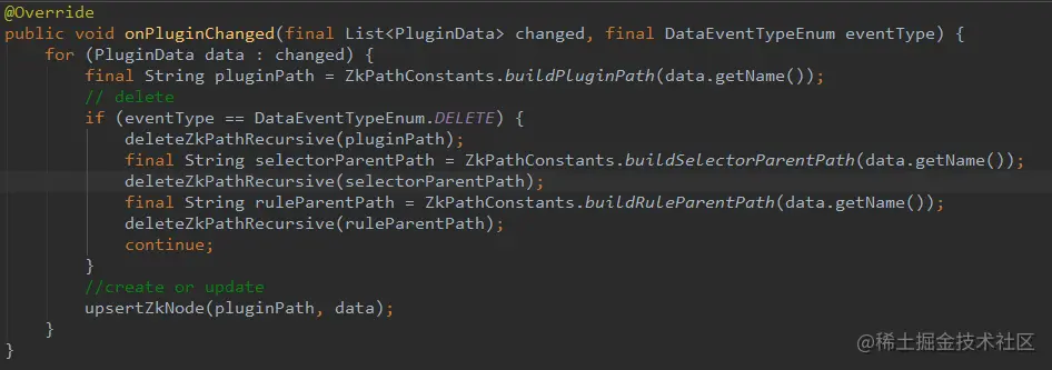 ZookeeperDataInit 就是在启动时,把 selector 和 rule 等数据写入 zookeeper,每当有数据变更,就会更新 zookeeper 节点。