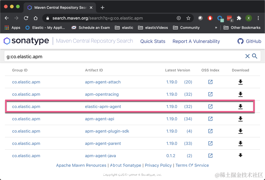 - 选择 “elastic-apm-agent” 的最新版本。
