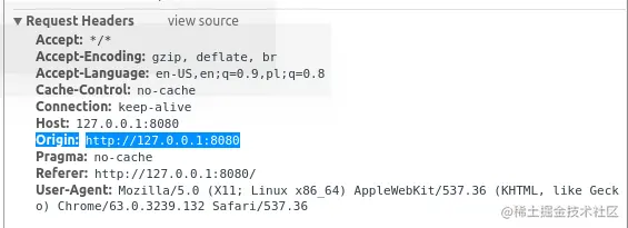 • 它有效地更改了浏览器发送的HTTP请求。如果添加了“ crossorigin”属性,则会导致将源:键值对添加到HTTP请求中,如下图所示。