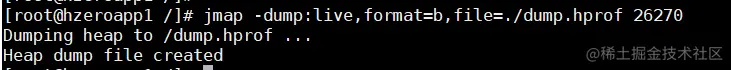 命令:jmap -dump:live,format=b,file=<path> <pid>