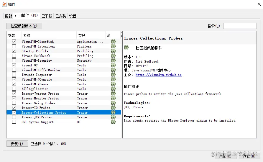 VisualVM 基于NetBeans平台开发工具,它具备通过插件扩展功能的能力,有了插件扩展支持,VisualVM可以做到: