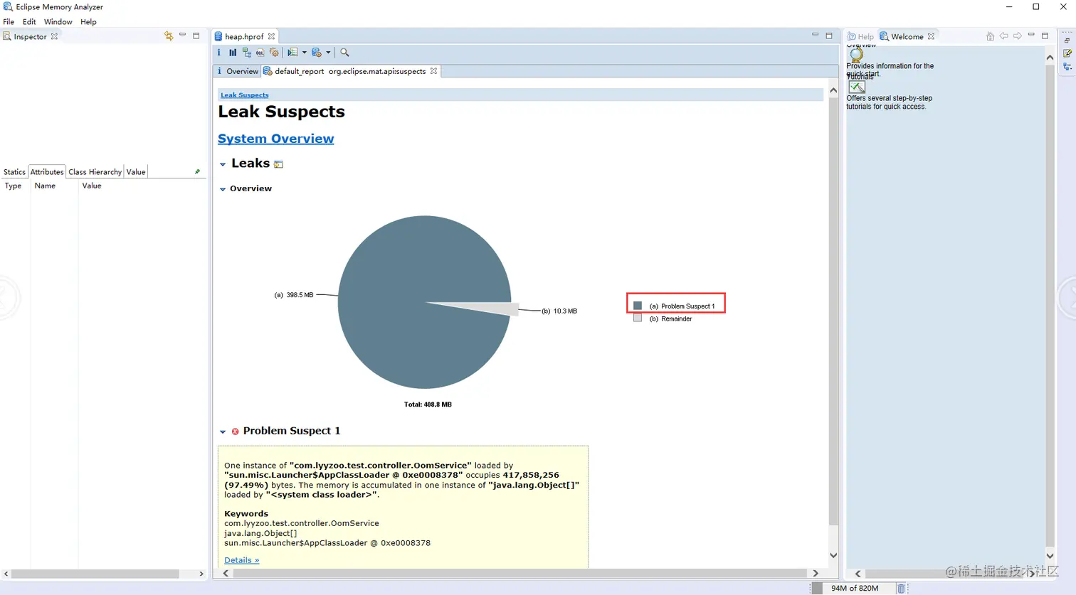 我们使用 jmap 命令 dump 下来的堆转储文件可以使用 MAT 来分析,可以分析创建了哪些对象,然后分析对象的引用链,找出问题所在。MAT 下载地址: www.eclipse.org/mat/downloa…