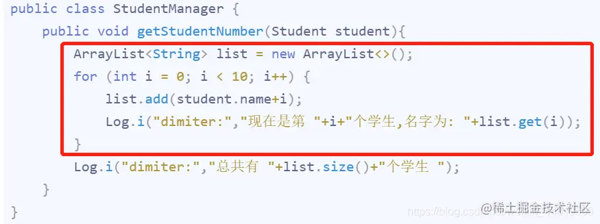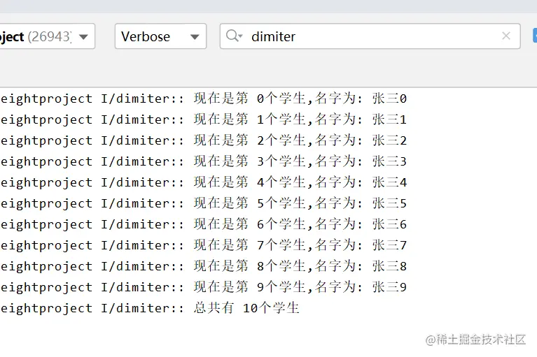 Log.i("dimiter:", "总共有 " + list.size() + "个学生 ");