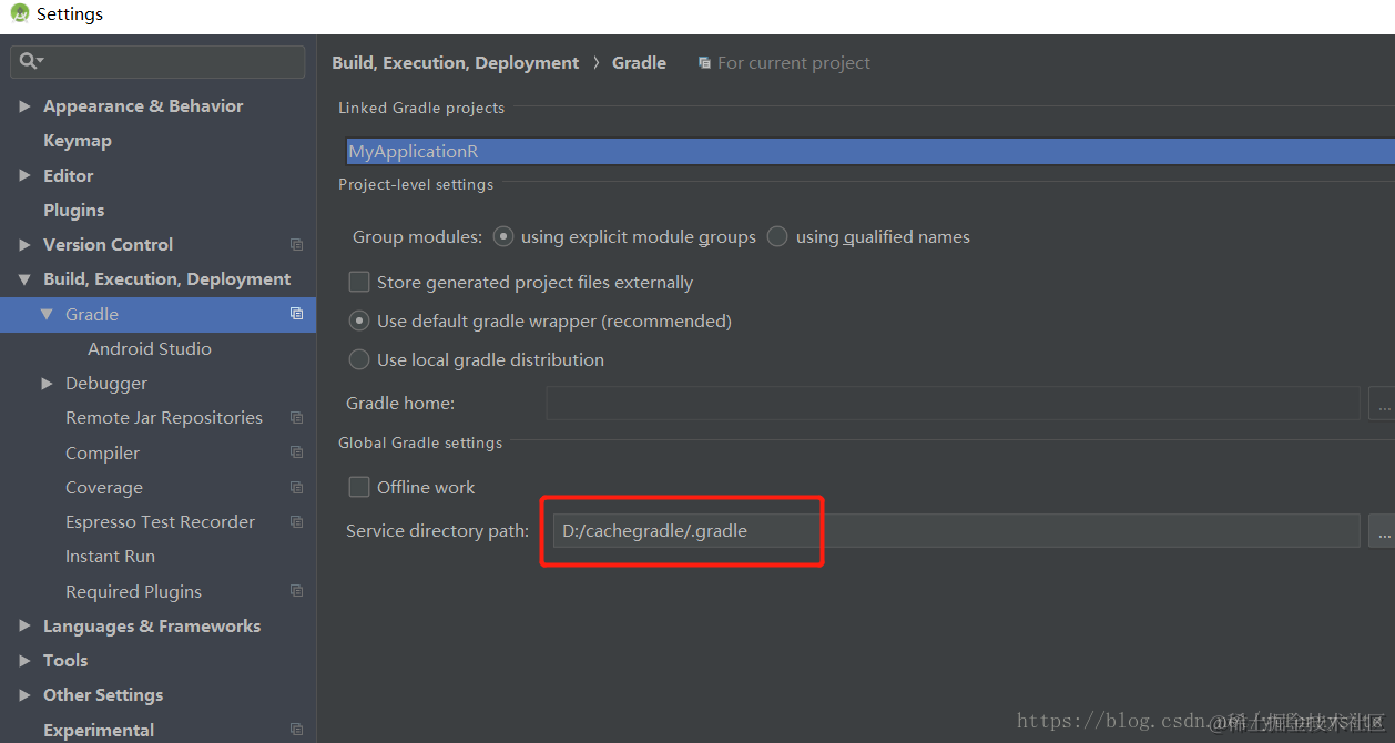 解决方案:1,查看你的C盘下.gradle文件夹的路径是否包含中文,如果是,那么请将路径改为英文,或者将.gradle文件夹复制到另一个不包含中文路径的地方,然后在你的as的setting中设置gradle的缓存路径改为你的新的不包含中文的路径。如下: