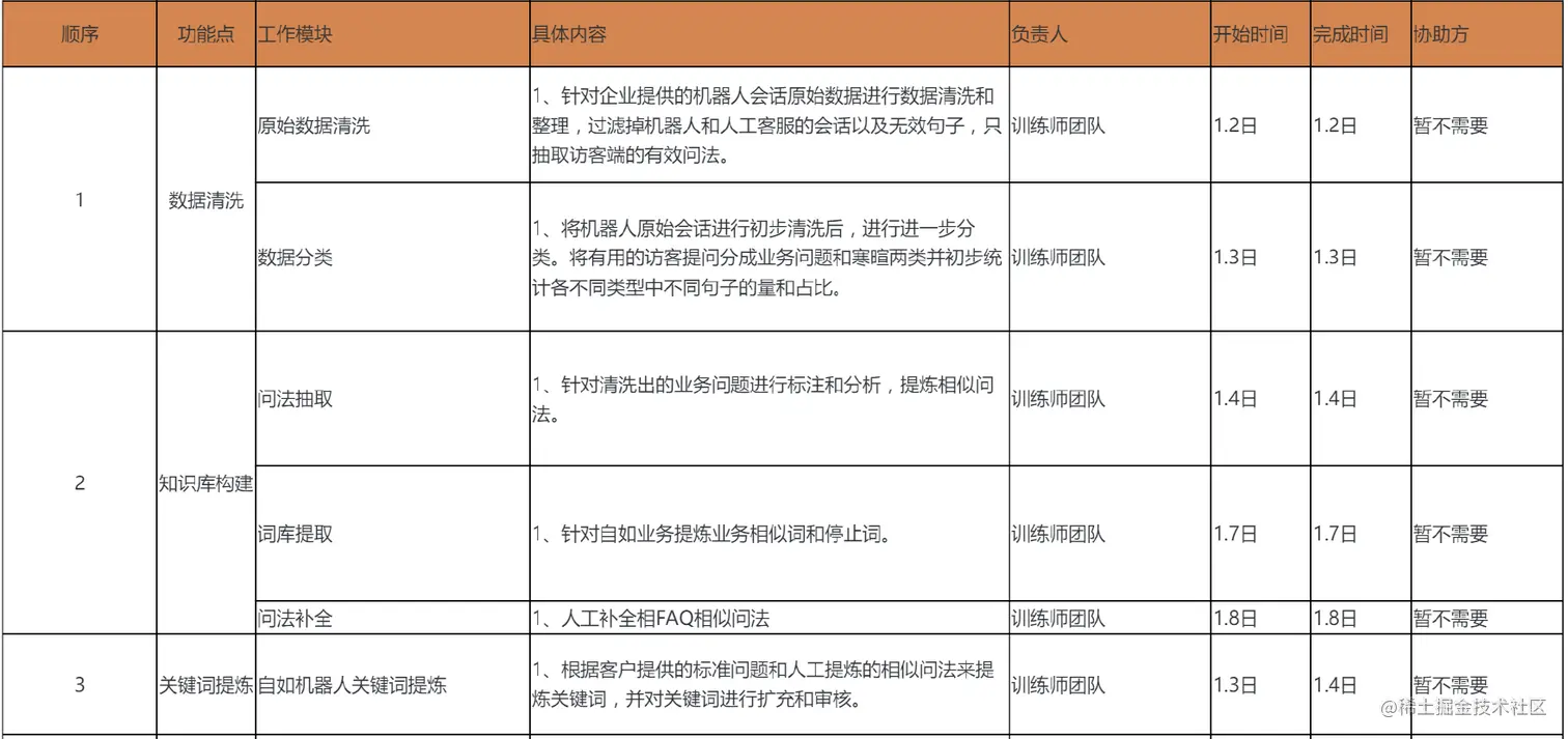 实际的知识库介于这两种极端情况之间,适合客服场景的知识库体系搭建需要专业的知识。大多数客户在第一次尝试智能客服系统时对知识库搭建并无实际经验,网易七鱼提供了专业的机器人辅助训练师服务。这些训练师处理过多种行业和场景下的知识库冷启动搭建,经验丰富, 可辅助客户在项目冷启动阶段快速搭建知识库,从而快速形成一套可用的客服系统。下图是一个典型客户的知识库冷启动过程: