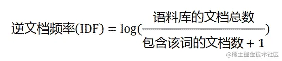 词袋模型使用词频作为句子向量中元素的值,还可以进一步用语义信息更丰富的指标来生成句子的向量空间模型表示,例如表示词重要性的TF-IDF指标。TF-IDF是词频(TF: Term Frequency)和逆文档频率(IDF: Inverse Document Frequency)两项指标的乘积,其思想是如果一个词在当前文档中出现的频率高,而在其他文档中出现的频率相对较低,那么说明这个词具有很好的区分度。词频可以通过统计当前句子得到,而逆文档频率则需要遍历所有文档,按照以下公式计算: