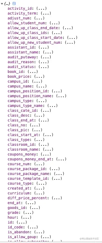 比如像下面这种,后端返回的对象属性有几十个,但是我们二次操作像后端提交数据的时候,他们接口只需要其中的10几个