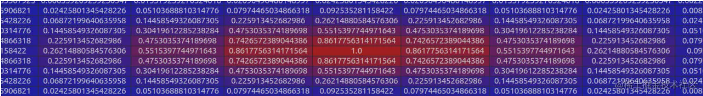 - GT值 是用高斯核将中心点分布到heatmap上。下图是源码生成的GT
