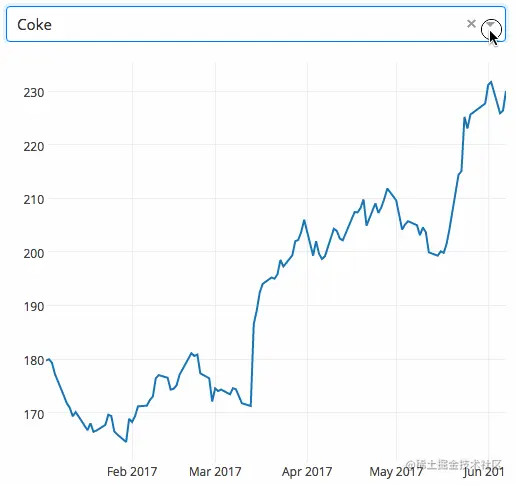 例子下面的例子展示了一个具有下拉功能的高度交互式图表。当用户在下拉菜单中选择一个值时,应用程序代码将动态地将数据从 Google Finance 导出到 panda DataFrame。