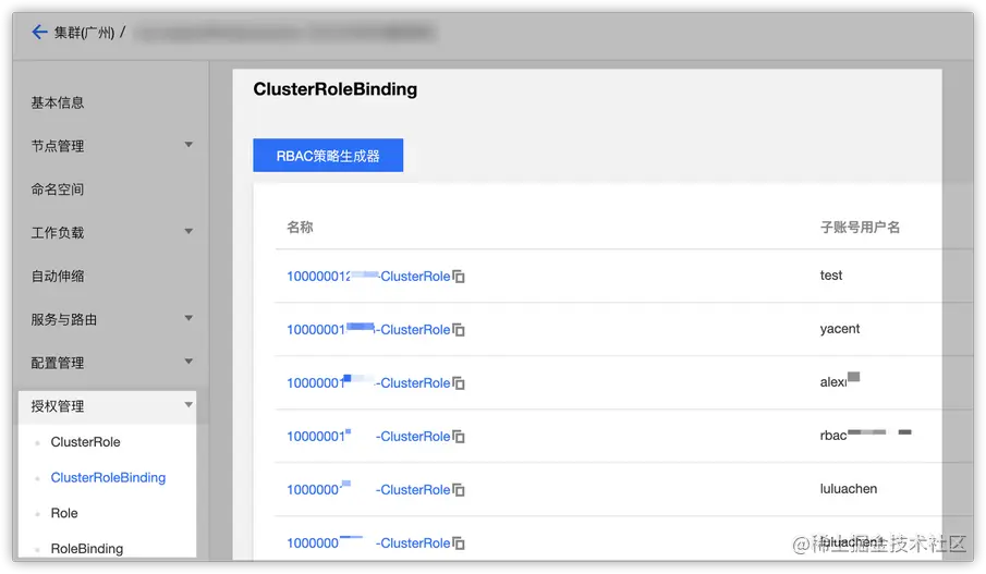 TKE的对接子账户的权限授权策略就是使用的Kubernetes原生的RBAC进行对子账户资源访问控制,这样符合原生,符合有K8s使用习惯的用户。