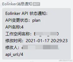 除了这种方式,Eolinker中支持webhook调用的方式进行通知,这是webhook文档教程地址:help.Eolinker.com/webhook/htm…