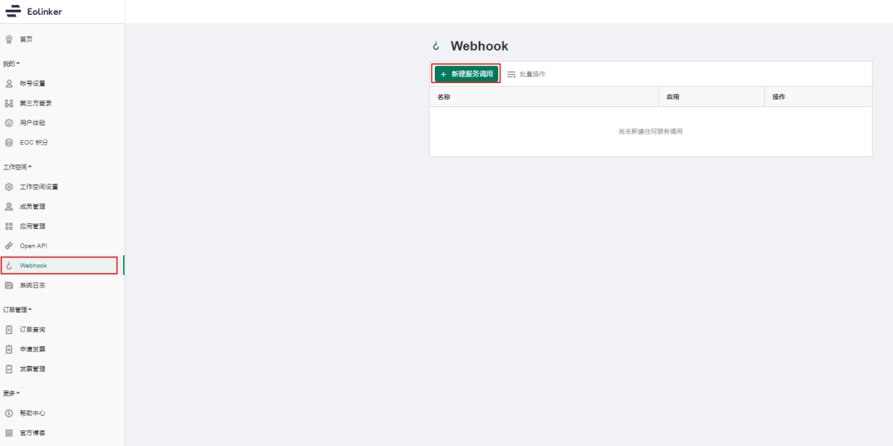 'text', 'content' => [ 'text' => $text, ] ]; //判断如果产品为API研发管理 且 事件为API文档 且 操作为切换API状态 则调用你想调用的接口、函数 if($eo_hook['hook_product'] == 'API_management' && $eo_hook['hook_event'] == 'API_document' && $eo_hook['hook_operation'] == 'switch_API_status'){ //自己需要调用的东西,如飞书提醒服务 $curl = curl_init(); curl_setopt_array($curl, array( CURLOPT_URL => "https://open.feishu.cn/open-APIs/bot/v2/hook/xxxxxx", CURLOPT_RETURNTRANSFER => true, CURLOPT_ENCODING => "", CURLOPT_MAXREDIRS => 10, CURLOPT_TIMEOUT => 30, CURLOPT_HTTP_VERSION => CURL_HTTP_VERSION_1_1, CURLOPT_CUSTOMREQUEST => "POST", CURLOPT_POSTFIELDS => json_encode($data), CURLOPT_HTTPHEADER => array( "Content-Type:application/json" ), )); $response = curl_exec($curl); $err = curl_error($curl); curl_close($curl); if ($err) { echo "cURL Error #:" . $err; } else { echo $response; } } 编辑脚本并放在自己的服务器上,然后记录下存放的地址,确定ip+脚本文件名可以访问到。 接下俩我们进入Eolinker空间中,会看到左侧导航栏会有设置按钮的小图标,点击 工作空间设置  进入空间设置后,选择 webhook ,点击新建服务调用  然后把刚刚创建的脚本地址以,ip地址/jiaoben.php的形式填入,然后更改API状态就可以了。  点击确定后,如弹出地址错误,则需要检查以下原因: (1)填写的通知地址是否成功创建了此脚本文件 (2)访问地址、文件名填写是否有误 (3)服务器文件权限、链接重定位问题  (1)Eolinker_webhook教程文档: https://help.Eolinker.com/webhook/html/usage.html (2)飞书自定义机器人: https://open.feishu.cn/document/ukTMukTMukTM/ucTM5YjL3ETO24yNxkjN#top_anchor (3)钉钉自定义机器人: https://ding-doc.dingtalk.com/doc#/serverAPI2/qf2nxq/26eaddd5 (4)企业微信自定义机器人: https://work.weixin.qq.com/help?person_id=1&doc_id=13376#如何使用群机器人/如何使用群机器人 更多功能探索可以直接在工具上尝试~ 使用地址:[www.eolinker.com](https://datayi.cn/w/YoX2N7LR)