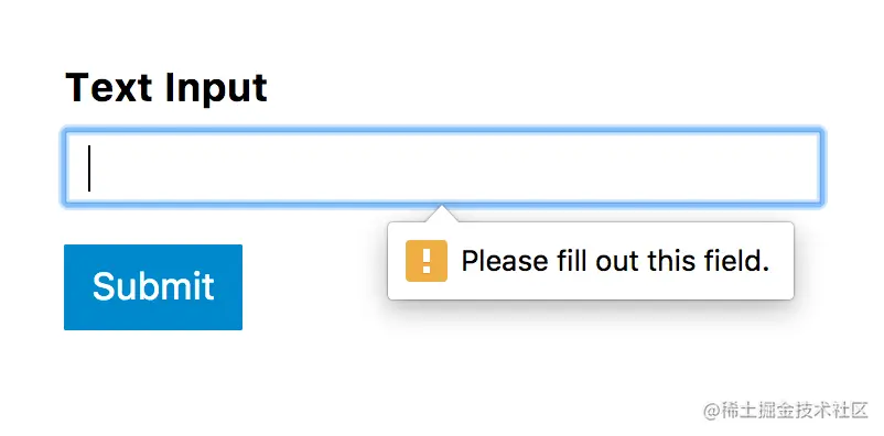 假设你有一个文本字段,用户在提交表单之前必须要填充这个字段. 这时可以给输入框添加 required 属性,当用户没有填充此字段时,支持该属性的浏览器就会发出警告,并阻止表单的提交。
