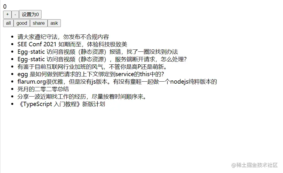 那么我们在原有的counter基础上,再来做一个用axios获取远程数据,并可以切换展示数据类别的功能。
