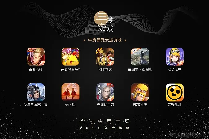 作为全球前三、MAU超过5.3亿的应用分发平台,华为应用市场也不例外。1月14日,华为应用市场2020年度榜单正式揭晓, 77款应用上榜(含20款游戏应用),而透过这份从海量用户的生态中沉淀的榜单,我们亦能一窥玩家兴趣变迁,把握游戏产业的未来趋势,及时抓住风口。
