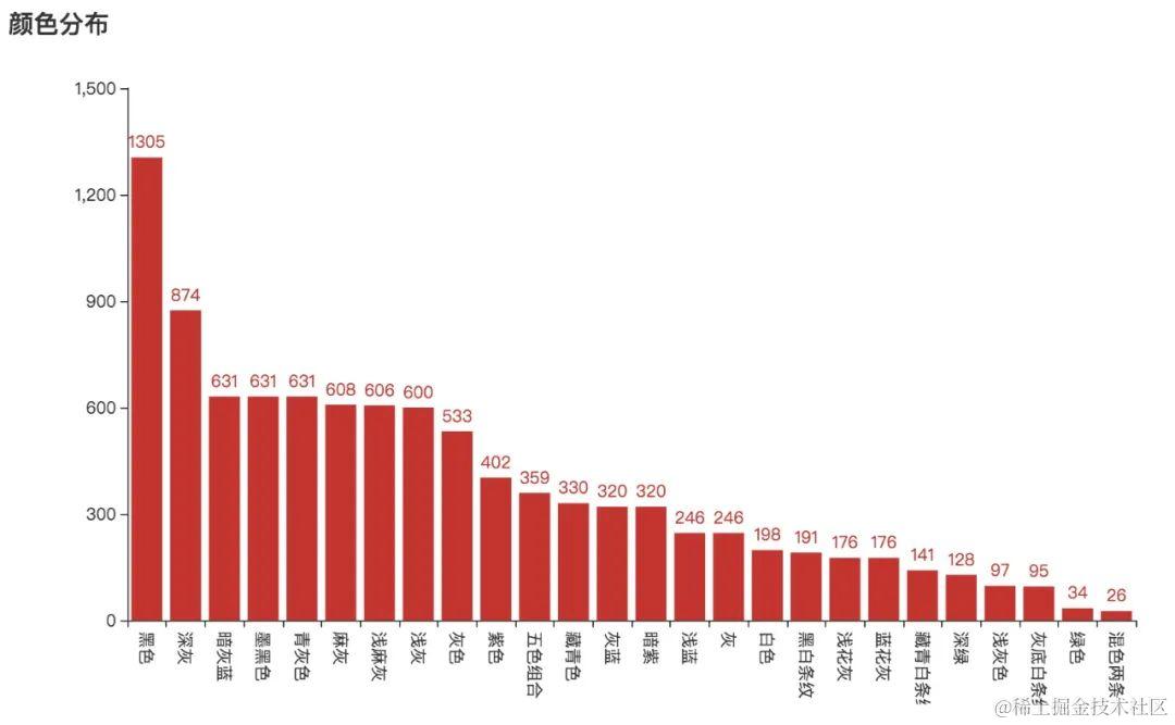 颜色并没有出乎我的意料,黑色遥遥领先,不过,如果把几种灰色加起来的话,可能超过了黑色。总之,黑色和灰色是大众的选择。