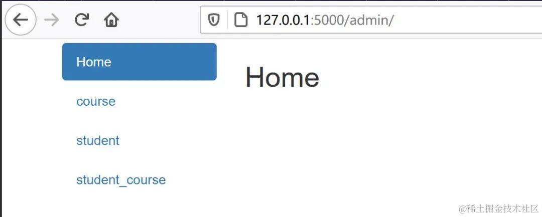 左侧菜单除了 Home 外,其他的都是库表名称