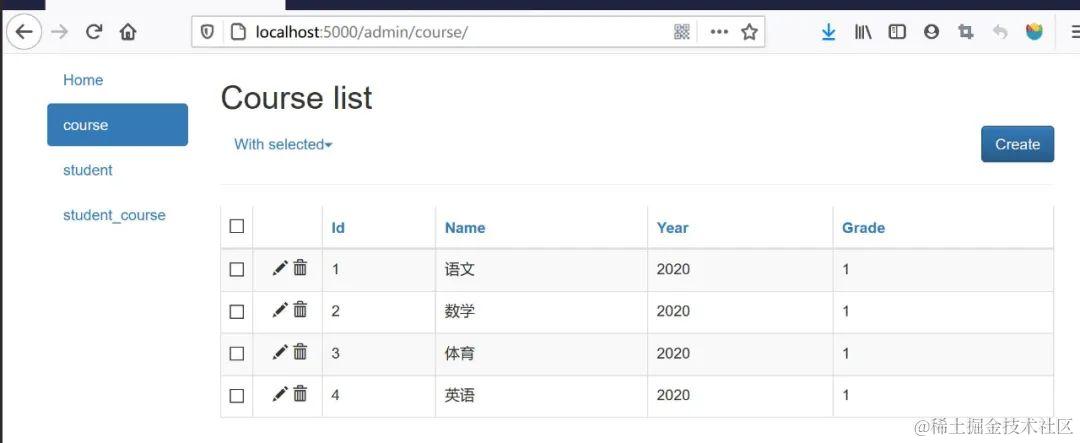 另外多选数据后,可以通过 With selected 菜单下的 Delete 按钮来批量删除
