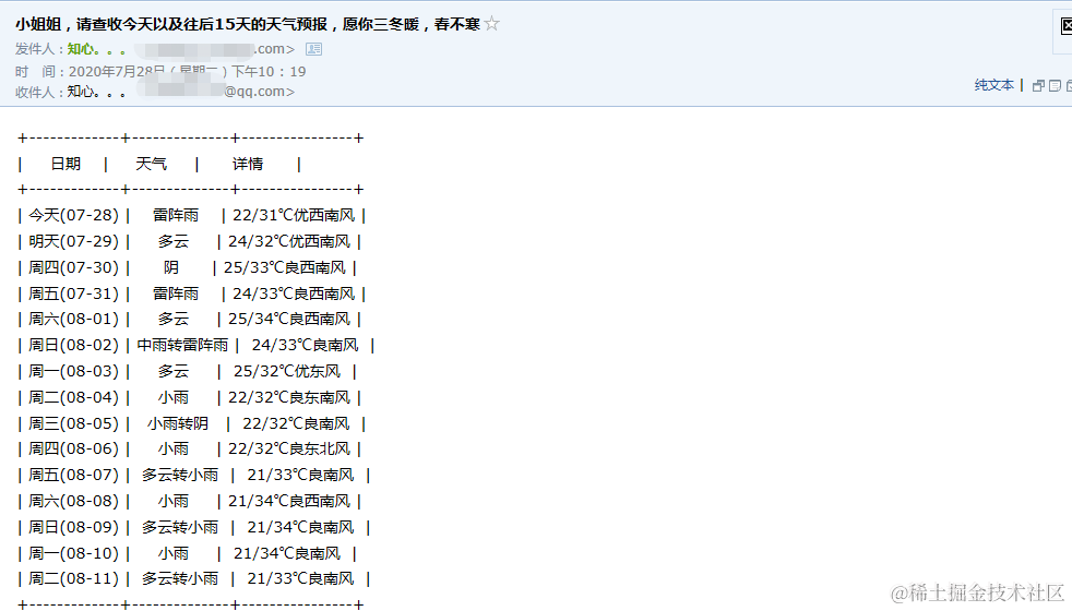 mail_title = '小姐姐,请查收今天以及往后15天的天气预报,愿你三冬暖,春不寒'