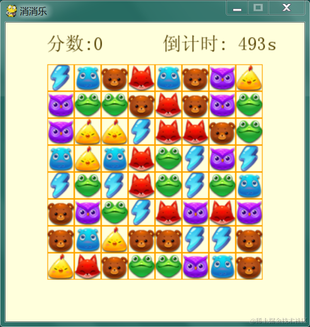 消消乐的构成主要包括三部分:游戏主体、计分器、计时器,下面来看一下具体实现。